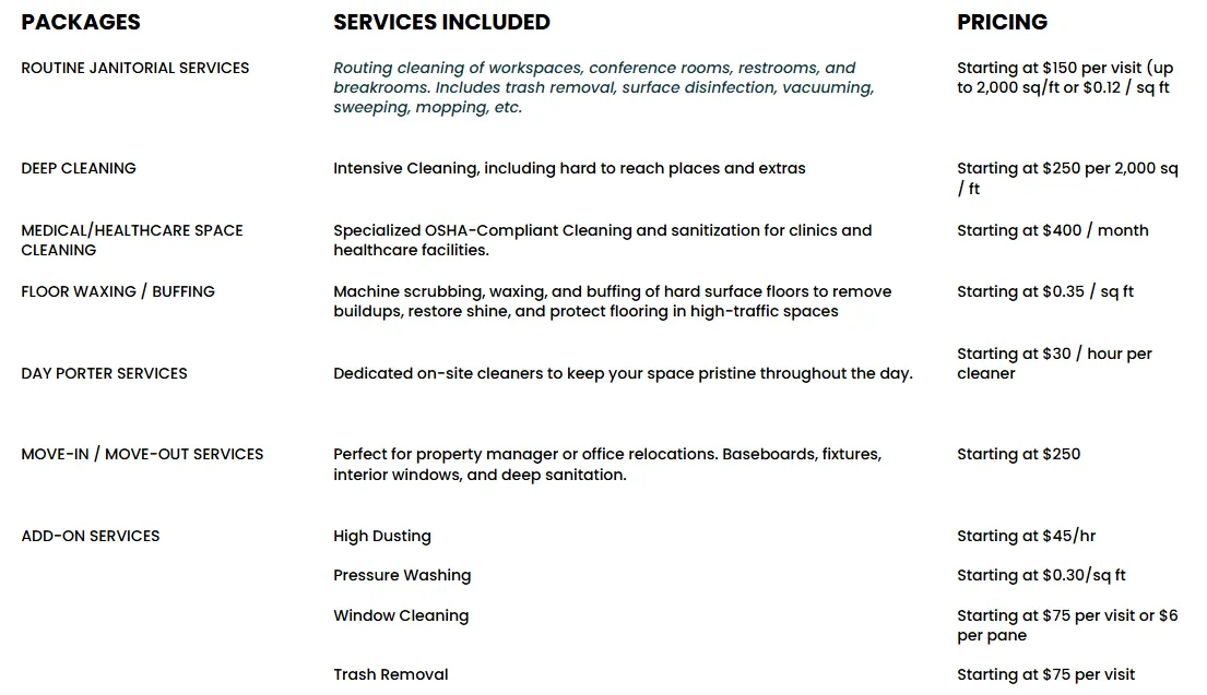 Starting at $150 per visit (up to 2,000 sq/ft or $0.12 / sq ft